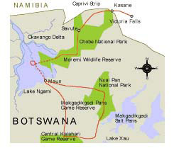 This morning we enjoy an early morning activity, before returning overland to Maun, for our scenic flight into the Okavango Delta where we camp at our exclusive campsite on a private concession (complete with camp staff) and explore the Okavango by mokoro (dug-out canoe) and powerboat. The evening meal is prepared under a canopy of trees while around us the sounds of the night are now quite different - thousands of frogs forming a noisy, yet soothing backdrop. We rise with the dawn and explore the floodplains on foot and by mokoro. Depending on game concentrations we could expect to find lechwe, kudu, buffalo, reedbuck and many other species. The flora too provides a fascinating glimpse into the intricate ecology of the Delta. During the hot hours of the day the possibility of a swim presents itself.